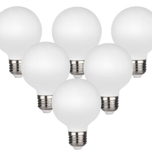 KGC Bombillas LED Edison Globo, Blanco Cálido 2700K CRI 90, Bombilla de Filamento LED, 5W Equivalente a 40W, G25(G80) Regulable, Vidrio Lechoso, Espejo de Tocador de Baño, Paquete de 6